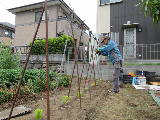 昼食・テレビは鑑定団。1時過ぎに福井農園に行き、スナップのツルを移動する。ネットを外して片付け、パイプ20本を引き抜く。このパイプを北E1のツクネの畝に立て、ハンマーで打ち込む。別のパイプを使って連結する。これなら台風にも強いはずだ。トマトのパイプも補強して、ソラマメの初収穫をする。感動の収穫だ。息子には黙って食べよう。ニンニクの芽を切り落とし、エンドウの収穫をする。4時に帰宅して、日誌記入と農作業計画。春の農作業と収穫は実に楽しい。2階で写真加工とHP入力をする。5時半に風呂に入り、のんびりと晩酌と夕食。酒の肴はソラマメだ。美味しくてアゴが数回外れた。テレビ・うたた寝。8時に休む。食事前に風呂に入ったが、生活は変わらなかった。