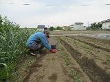 昼食・テレビは鑑定団。そして食器洗い。1時半ころに福井農園に行き、北E2のスナップのあとを草取りする。肥料と石灰をまいて終了。北A1のスナップを収穫しながら、ネットからツルを引き離す。2時間近くかかったか゛、なんとかネットが外せる状態になった。雑草の処理をして、ごみ袋2個。ニンニクの芽を切って、5時半に帰宅する。晩酌と夕食。うたた寝・テレビ・風呂。9時半に休む。