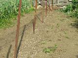 北E1のトマトにパイプを立てました。 アイコというミニトマトです。 北D2。オクラは発芽中。エダマメはまだ。 |