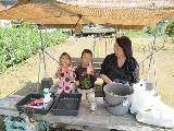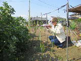 | 畑の花を庭に | 孫の手伝いは失敗 | ベンチで孫は休憩 | インゲンに土寄せ |