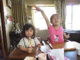 可愛い孫二人が朝食を待機。 北E1のエンドウは最後の収穫。 |
