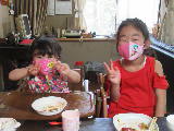 孫の茉莉花と花蓮がやってきました。 思い切って隣保組長会を開催しました。 |