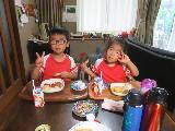 昼食・テレビ・昼寝。退屈したので、2時半からごみ置場巡回に行く。違反ごみは少なく、気持ちがよい。そのまま福井農園に行き、野菜をチェックする。トマトが熟れている。雨が降り出したので、急いで帰る。濡れたのでシャツを着替え、ついでに朝シャンとヒゲ剃りをする。4時に保育園から孫2人を連れてくる。公民館長が夏祭りの中止決定の文書をもってくる。校正をする。2階でHP入力と自治会入力をする。写真加工・HP入力・自治会入力。5時半から喜代花の誕生祝いを始める。から揚げがメインだ。最後にケーキも出して、孫は喜んでいた。私は食い過ぎと飲みすぎ。風呂に入って8時半に休む。
