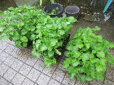 5時に起床。コーヒー飲んで、庭の花苗に水をかける。自宅のごみ3個を出して、ごみ置場の掃除をする。今日の計画と新聞を読む。ジョウロを抱えて道路5ヶ所のプランターに水かけをしてくる。30分以上かかった。7時に朝食を済ませ、2階で写真加工・HP入力・自治会入力をする。HPの更新も済んだ。広報・まちづくり城山の入力もできた。9時に福井農園に行き、まずは野菜の収穫をする。ナスの支柱に4列のロープを張り、枝のひもかけ用にする。枝が折れやすいピーマン一列にひもをかけをする。プランター3個を積んで、4丁目のごみ置場横に並べる。11時半に帰宅して、テレビ休憩。