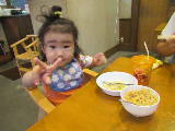 孫の花蓮はラーメンとチャーハンです。 私が食べさせると、パクパク食べます。 |