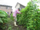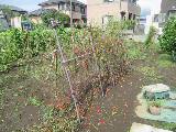 菅原神社裏のごみ置場です。 パイプを下げていた針金を交換しました。 北E1のミニトマトが長雨のため枯れました。 |