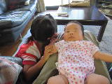 | 生後二ヶ月の喜帆を膝の上で子守りです。