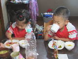 孫の朝食風景。ここまでが大変なのです。 ニンジンとダイコンは失敗です。処分。 エダマメも処分。草刈り機は便利です。 |