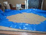 家内が米の中に虫がいると騒いでいます。 ブルーシートの上に広げて、虫を探しました。 ムシすればいいのにと思います。 |