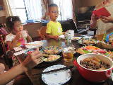 昼食・テレビは鑑定団。朝シャンとヒゲ剃りをして、2階でPC作業をする。自治会広報9月号はほぼ完成した。家内に指摘されて風呂洗い。バイクでごみ置場巡回に出かけたが、すでに燃やすごみが大量に出ていた。Taさんの家を弔問して、香典を手渡す。4時半に福井農園に行き、ダイコンの畝で補充の種まきをする。北A2を1列耕して、インゲンの2回目の種まきをする。北E1を1列耕してレーキで整地する。ニンニクを予定だ。6時に帰ると長男家族が来ていた。今日は喜帆の百日の祝いだ。ご馳走を前にビールで乾杯。飲みすぎて眠い。孫たちは風呂に入って帰っていった。久しぶりにテレビを見た。風呂に入って9時に休む。