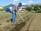 5時に起床。日誌記入・今日の計画・農作業計画。食器を片付けて、2階でHP入力と自治会入力。花苗申込書を作成して投函する。新聞とテレビ。朝食を済ませて食器洗いと風呂洗い。7時半過ぎに国勢調査のパンフをポストインしてくる。もう少しだ。ついでに公園花壇のセンニチコウの種取りをする。公民館説明資料を準備して、9時に福井農園に出かける。北B2で畝作りをして、4列完成したのでレーキで整地する。北B2のジャガ1列に肥料をまいて土寄せ。育苗箱に土を入れて、ノースポールの種まきをする。11時前に帰るときタバコを買ったら、値上げしていた。農作業計画を立てて、朝シャンとひげ剃り。2階でPC作業を少し。