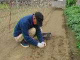種まきをして二ヶ月のダイコンを初収穫。 これからはどんどん収穫できます。 10cmほどの小さなタマネギ苗を移植しました。 |