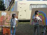スポーツ協会イベントの様子。 4班に別れて行動しました。 準備が大変だったと思います。 孫の大喜と喜代花がお絵かき。 |