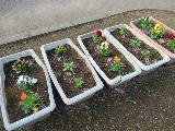 下代公園のプランターは大きいサイズです。 パンジーとノースポールを植えました。 |