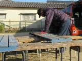 11時半に早めの昼食。喪服に着替えて三和葬祭に行く。12時半から町民の葬儀だが、親族を含めて5人の参列。1時半前に帰宅して、いつもの作業着に着替える。二本木の保全隊事務所に行き、稲刈りの報酬を受け取る。3時に丸ノコとコードリールを公民館に持ち込み、夏祭りで使っていた踏み板を切断する。4枚切り刻んで透明袋に入れる。5袋完成。4時に福井農園に行き、花苗に水かけをする。バケツの土を移動したり、野菜くずを袋に詰める。5時に帰宅して風呂に入り、晩酌と夕食。鍋は温まる。テレビを見て7時半に休む。少し早すぎると感じる。