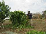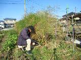 アスパラの茎を太枝切りで切っています。 サトイモの畝の草取りをしました。 |