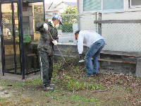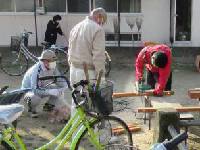 Naさんはチェーンソーで植木を切りました。 公民館の庭が広くなりました。 スポーツ協会の若者3人も積極的に作業開始。 |