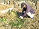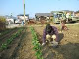 北D3のソラマメ畝の草取りです。 霜で被害がないか心配しています。 |