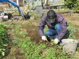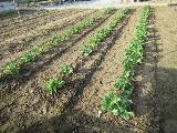 ニンジンの収穫を終えて畝の草取りです。 土が冷たいので次第に手が冷えてきます。 北E2ではソラマメが頑張っています。 |