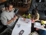 親子三人でお絵かきしています。 立体的に描けるペンが珍しいです。 |