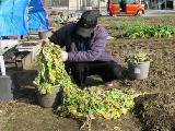 孫のためにもちつきをする家内です。 北A1のシュンギクを処分しています。 |
