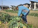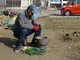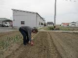 かなり大きなブロッコリーです。 なぜ大きくなったのかわかりません。 ネギの枯葉を取り除いています。 |
