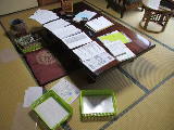 最近和室も仕事場になりました。 会議資料を並べて準備をします。 ナスも少し大きくなりました。 |