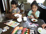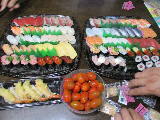 次男が持ってきたスシローの寿司です。 茉莉花と花蓮も美味しそうに食べました。 |