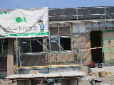 公民館建設現場では着々と工事続行。 オクラも順調に育っています。 |