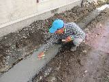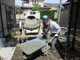 コンクリートを一輪車で運びます。 Maさんがコテでならします。 池上地区の花壇を見に行きました。 |