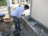 ブロックに穴を開け、セメントを入れます。 ツクネの草取りをして、ツルの誘引です。 |