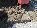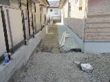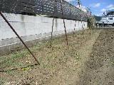 公民館東側の敷地です。防草シートと砂利。 アスパラの茎が倒れて邪魔になりました。 |