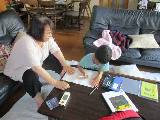 孫の夏休み宿題をさせています。 敷地には防草シートと砂利です。 |