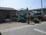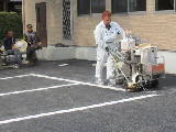 砂利を敷いて固めています。 夕方から駐車場にラインが引かれました。 |