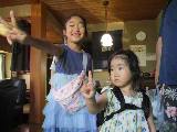 Maさんがフェンス工事を頑張っています。 午前中にすべての作業が終わりました。 次男の孫の茉莉花と花蓮の2人です。 |