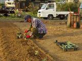 北D3の畝3列を耕しました。 すでに石灰と肥料はまいています。 種から育てたブロッコリーの苗を移植。 |