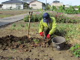 ジャガの畝の草取りをしました。 しかし、ジャガの芽は出ません。 北B2のサツマイモの場所です。 |