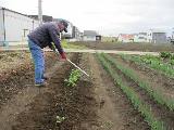 昼食・テレビ。1時半に福井農園に行き、まず北A1の畝1列を耕す。レーキで整地して、補充用に育てていたソラマメ13株を移植する。ごみ袋1個を作って北A2の1列を草取りを兼ねて耕運機で耕す。ニンニクの補充4株で完了。ダイコン・ニンジン・インゲンの収穫。家内から連絡があったので、野菜を持って急いで帰る。蘭子に野菜セットを渡して、畑に引き返す。スナップの横にサニーレタスの移植を終える。帰る途中Fuさんにダイコンを届ける。日誌記入と農作業計画。5時半風呂に入って晩酌と夕食。今日は大好きな水炊きだ。いつもより食べた。食押さえはアンパン。テレビを見て8時半に休む。