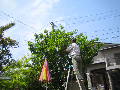 5時半に起きて、新聞を読む。出勤は午後のため、気分的にはのんびりしている。可愛いチェリーと散歩に行く。朝食を食べ、庭でアサガオの種まきをする。ホームページの更新を済ませ、畑へ出かける。ネットの処理やインゲンの種まきをする。9時半には帰宅して、駐車場でほうき立て等の工作を始める。10時になったので、近所のHIヒロセで補充用のピーマン苗を購入する。畑で定植し、ついでにエンドウ収穫。豆ご飯が大好きなので、収穫しながらヨダレが出る。自宅でサヤをむく。次は職場に差し入れするためのサクランボ収穫。着替えて出勤。