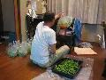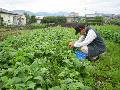 インゲンの収穫も大変です。同じ姿勢で収穫しなければならず、膝が痛くなります。 | ![]() |