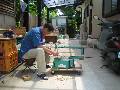 電動のこは便利ですが、作業台がないので姿勢が悪いのです。 | ![]() |