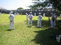 5月の昇段試験を受けられなかった人のために、6月も試験があります。5人ほどの審査員が見守る中で、こまを回さなければなりません。今回は3人が受験しました。 | ![]() |