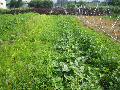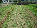 畑の西4と名づけた場所です。キュウリ・オクラ・ツクネイモ・コカブが所狭しと並び、それらはすべて雑草に埋もれています。キュウリにはネットを張る予定でしたが、他の作業に追われて地這キュウリになりました。 |