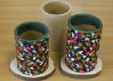 職場で印刷する大きなロール紙の芯を利用しています。長さは1mほどありますから、5〜10cmの長さで適当に切って、和紙を糊付けしています。これだけで鉛筆立てが完成します。底の板は昨年阿蘇キャンプ場でもらったものです。たくさん作って、来客に無料配布いたします。欲しい方は教育センター・図書資料室の福井へご連絡ください。 |