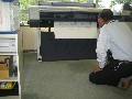 センターで拡大印刷するのも、私の仕事の一つです。長尺ものの横断幕は4m位になり、失敗が許されません。まだまだ修行中です。 | ![]() |