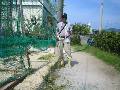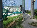 城山小学校の棒球ネットの下を草刈りしました。もう少しでバックネットに到着します。 |