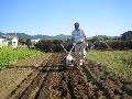 | 福井農園では、耕しと種まきをくり返しています。時間的に余裕がありますので、例年より早い種まきをしています。小型耕運機のため、腕で機械を押さえて前進しなければなりません。以前肩を脱臼したので、翌日は肩が痛みます。身体と相談しながらの農作業を続けています。 | ![]() |