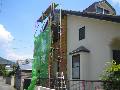 | 雨漏りがするので、壁の改修工事をしています。タイルが割れて雨水が入り、内部の板が黒く腐っていました。タイルを外すのは機械のため、機関銃のような音が続きました。 | ![]() |