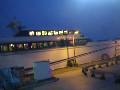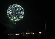 熊本港で乗り込んだフェリーです。定員300人ということで申込みましたが、たくさんの人がやってきました。実は桟橋で40分ほど待っていました。島原港までは何も見えないので、ひたすら飲んでいました。 船内からは見えないので、皆さんデッキからの見学です。打ち上げ場所から離れていたので、花火は遠くに感じました。 |