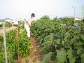 福井農園(北の畑)では、いつ行ってもナスが取れます。今年のナスはよく育ちました。秋ナスがたくさん取れますので、知人に配ってます。我家の冷蔵庫には入らなくなりました。 |
